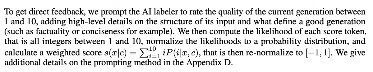 具体来说,AI 标注器根据某些标准(如准确性和简洁性)对每个生成的响应进行量化评分(从1到10),然后将这些评分转化为一个标准化的奖励信号。这些标准化后的数值被直接用于指导目标模型的强化学习过程。