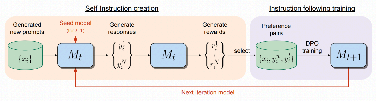 - 自我指令创建:生成和评估新的指令遵循示例并将其添加到自己的训练集中的能力。